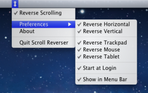 Mit der kleinen App Scroll Reverse lässt sich für Trackpad, Mouse und Tablet die Scroll Richtung einstellen und speichern. Keine Verwirrung mehr weil der Bildschirminhalt gerade in die falsche Richtung scrollt.
